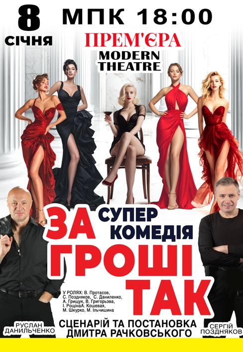 Спектакль "За деньги так" состоится 8 января 2026, 18:00, четверг в ГДК. С помощью сервиса internet-bilet.ua, Вы сможете с легкостью забронировать, заказать и купить билеты на интересующий Вас концерт, спектакль, оперу, балет, мастер-классы, спортивные и детские мероприятия, оплатив их самым удобным для Вас способом: через интернет банковской картой VISA/MasterCard, наличными или курьером, если сделаете заказ билета c доставкой.